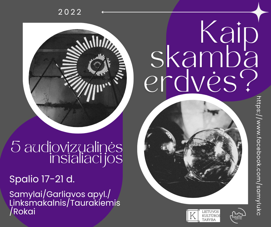 Spalio 17-21 d. net 5 audiovizualinės instaliacijos „Kaip skamba erdvės?“ atranda savo vietas 5 Kauno rajono seniūnijose. Susitikime: