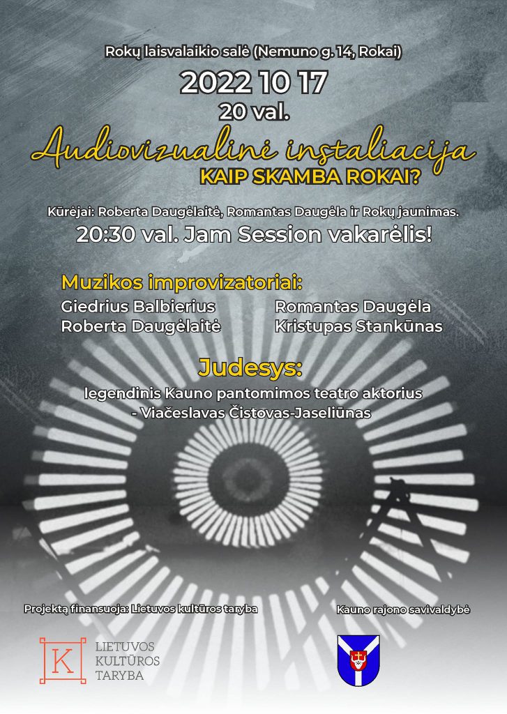 O spalio 17-21 d. net 5 audiovizualinės instaliacijos „Kaip skamba erdvės?“ pasklis po 5 Kauno rajono seniūnijas (Samylai, Garliavos apyl., Linksmakalnis, Taurakiemis, Rokai) ir taps vienos savaitės gyva paroda.