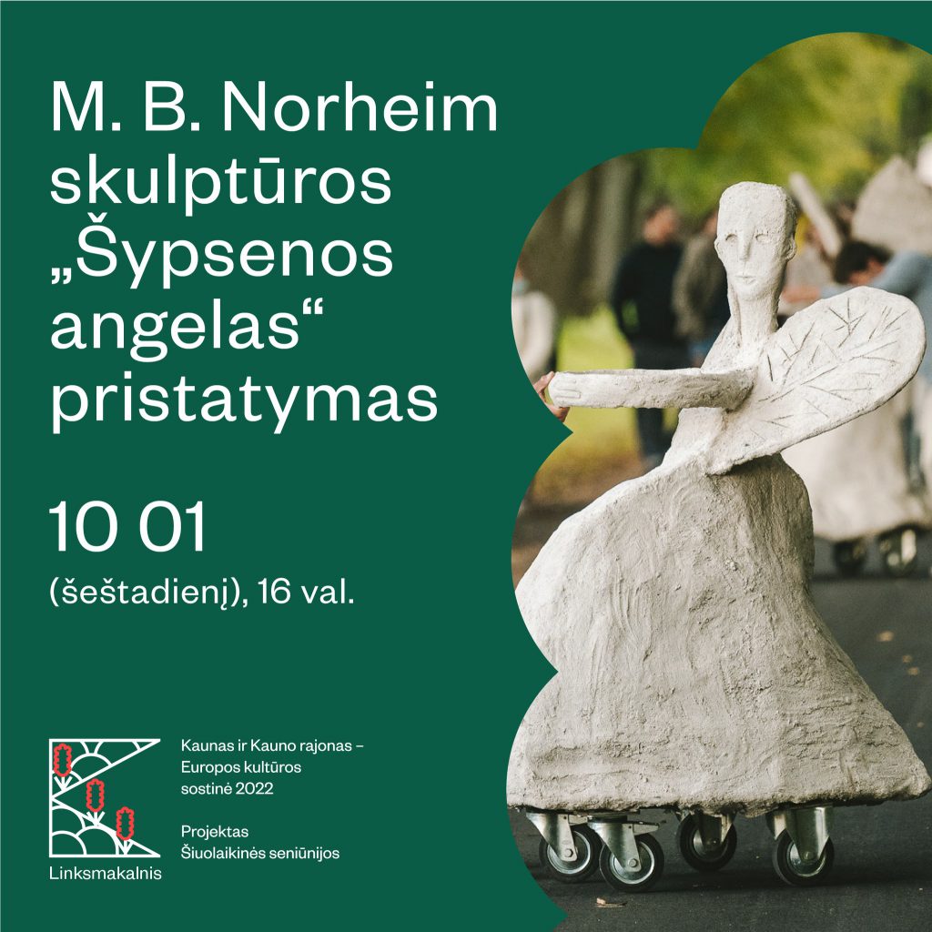 We happily enter the second autumn month of the year of the European Capital of Culture: the „Smiling Angel” sculpture of the „Rolling Angels” project by the foreign artist M.B. Norheim will be presented in Linksmakalnis on 1 of October.
