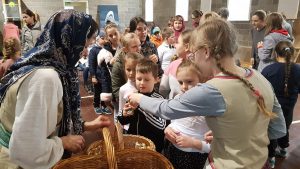 Margas kiaušinis – margas pasaulis. Tokios margos ir buvo Vaikų Velykėlės Linksmakalnyje. Klausėmės nuotaikingo ir šilto Linksmakalnio mokyklos darželio ugdytinių koncerto. Emocingai žiūrėjome Nykštuko lėlių teatro spektaklį Paršiukas Čiukas. Marginome pieštus kiaušinius, o tikrus ridenome. Ir dar gavome dovanų nuo Velykų Bobutės su anūkėle.