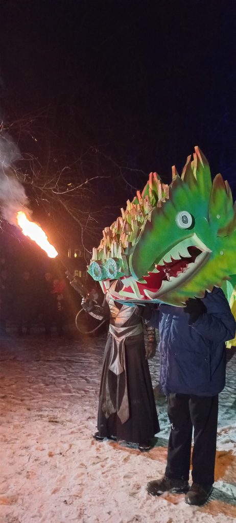 Girionyse Kalėdų senelis kartu su naujuoju augintiniu – žaliuoju drakonu linkėjo gražių švenčių!