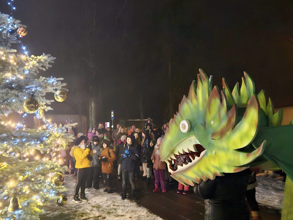 Sužibo Linksmakalnio gražioji žaliaskarė: svečiuose Kalėdų senelis, kitų metų simbolis – žaliasis Drakonas ir nenutylančios dainos