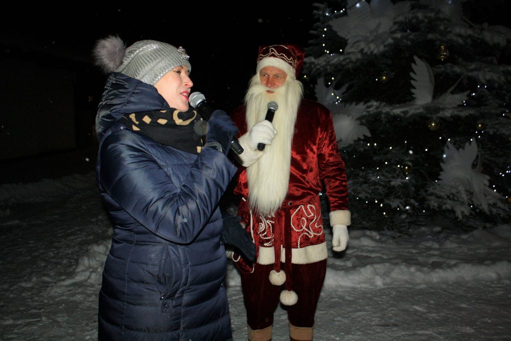 Linksmakalnio eglutė įžiebta su Kalėdų seneliu, šilta arbata ir jaukiu spektaklių mažiesiems