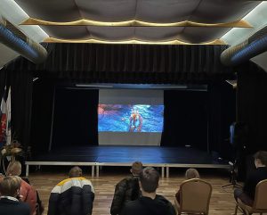Taurakiemio laisvalaikio salėje buvo daug garso ir tamsos, kaip tikroje kino salėje. Po pamokų su būreliu vaikų žiūrėjome labai gražų filmuką Klara ir stebuklingas drakonas.